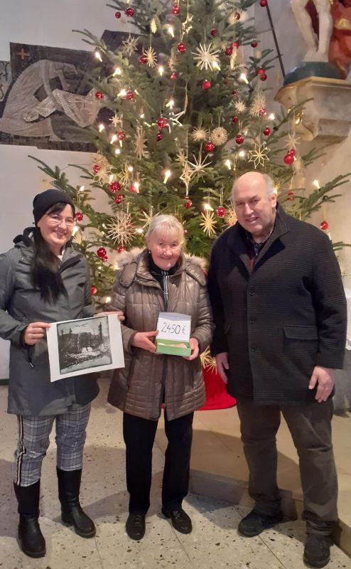 Aus dem Verkauf von Bildern des verstorbenen Oberwaltinger Künstlers Richard Kohlhäufl kam ein Erlös von 2.450 € zusammen. Kurz vor den Weihnachtsgottesdiensten übergab die Frau und die Tochter des Künstlers, Hannelore Kohlhäufl und Angelika Althammer, den Erlös an PGR-Mitglied Karl Schmidt. Das Geld wird für die Renovierung des Pfarrheims Leiblfing verwendet. Richard Kohlhäufl hatte zum Pfarrheim einen besonderen Bezug: Er gestaltete zwei Bandeisen-Plastiken: beim Treppenaufgang die Schöpfung und im Saal die Maria. Das Pfarrheim wird im Frühjahr 2024 renoviert.