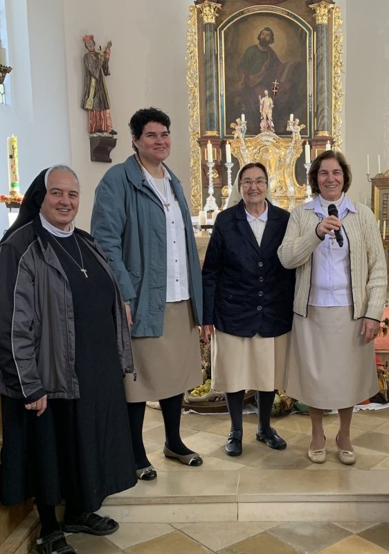 Unser Bild (von Albert Schmal) zeigt: Schwester Oberin Maria von Aiterhofen (links) zusammen mit den drei Schwestern aus Brasilien.