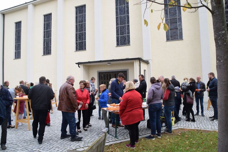 Im Anschluss an die Gottesdienste gab es in den Pfarrteilen Leiblfing, Hailing, Metting, Schwimmbach und Hankofen die traditionellen "Kiachl". Die Schmankerl hatte der Pfarrgemeinderat vorbereitet und versüßte damit den Kirchenbesuchern den Tag.