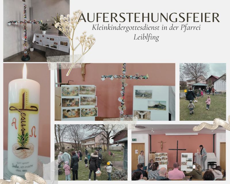 Am Samstag versammelten sich rund 50 Kinder mit ihren Eltern und Großeltern zum Kleinkindergottesdienst im Pfarrheim in Leiblfing. Im Mittelpunkt des Gottesdienstes stand die Geschichte „Mia, Theo und die Osterraupe“. Gemeinsam begleiteten die Kinder Mia und Theo, die eine kleine Raupe fanden. Sie beobachteten, wie sich die Raupe in einen Kokon verwandelte und schließlich als wunderschöner Schmetterling wieder hervorkam. Staunend entdeckten die Kinder, dass aus etwas scheinbar Totem neues Leben entstehen kann.