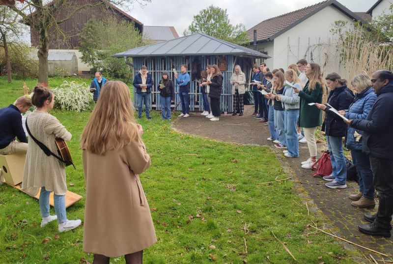 Leiblfing. Am vergangenen Samstag fand im Pfarrheim Leiblfing ein sogenannter "Jüngerschaftstag" unter dem Motto „Gottes Stimme hören“ statt. 30 Jugendliche und junge Erwachsene trafen sich zuerst im frühlingshaften Pfarrgarten zum Morgengebet mit schwungvollen Liedern. Im Pfarrheim begrüßte dann Pfarrer Leo Heinrich die jungen Leute und übergab das Wort an die beiden Moderatoren des Jugendtages Christina Wurm und Johannes Haider, die humorvoll und mit Charme durchs Programm führten. Sebastian Blaim und Julia Wurm gaben in zwei Impulsvorträgen einen Einblick in das Vaterherz Gottes und erklärten, was hilfreich ist, um die Stimme Gottes im eigenen Leben zu vernehmen. Als Beispiel dazu erzählte dann Vroni Fischer aus ihrem eigenen Leben, wie sie Gottes Führung ganz persönlich erkannt hat. Dazwischen gab es jeweils Kaffeepausen und Diskussionsrunden.