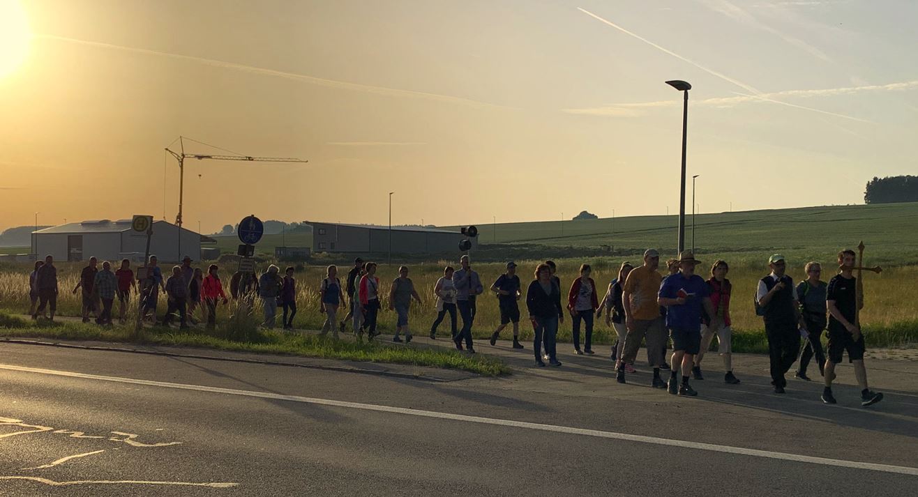 Um 5 Uhr ging's los bei Dämmerung. Man betete und sang in den Sonnenaufgang hinein und ging bei herrlichem Wetter die rund 15 km. Einige sind dann noch mit dem Fahrrad nachgekommen und als die Wallfahrer um 8.40 Uhr in der Dreifaltigkeitskircje angekommen sind, empfingen die Wallfahrer bereits viele Leute in der Kirche die nicht mehr zu Fuß gehen konnten, aber es sich nicht nehmen ließen, mit dem Auto zu kommen und den Wallfajrergottesdienst mitzufeiern. Anschließend stäkte man sich bei Bier und Würstl - wie zu alten Zeiten.