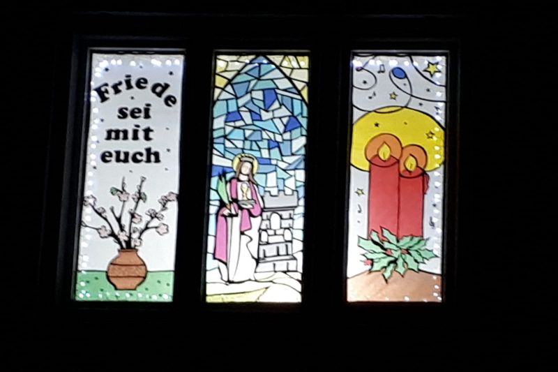Am Sonntag, 04.12. öffnete sich in Leiblfing das zweite Adventsfenster - mit der Heiligen Barbara als Motiv - bei Familie Deinhart. Zahlreiche Besucher trafen sich in der Blumenstraße, um miteinander zu beten, der Legende der Heiligen Barbara zu lauschen und zu singen. Familie Deinhart hatte das Fenster liebevoll mit der Heiligen Barbara und der Botschaft, die gerade in der heutigen Zeit aktueller ist denn je - "Friede sei mit euch!" gestaltet. Alle Gäste bekamen das Gedicht "Zum Barbaratag" von Josef Guggenmos und einen Barbarazweig - er erinnert an die Legende, dass Barbara auf dem Weg ins Gefängnis an einem Kirschbaum hängen blieb; dabei verfing sich ein Zweig in ihrem Kleid, der am Tag ihrer Hinrichtung erblühte.