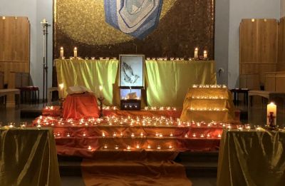 Das Arrangement von bunten Tüchern und zahlreichen Kerzen bietet eine stimmungsvolle Atmosphäre während des Gebetes, das einem zur Ruhe kommen lässt. Begleitet von meditativen Liedern und texten zum Thema BETEN und FASTEN, gibt es eine Lesung in vier Sprachen. Der Kirchenchor wird die berühmten Lieder von Taizè anstimmen. Die Besucher dürfen eine Kerze oder ein Teelicht im Glas mitbringen.