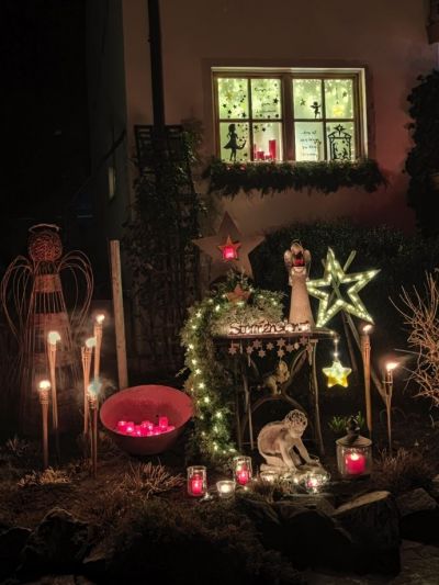 Am letzten Adventssonntag fanden sich zahlreiche Erwachsene und Kinder im Hof der Familie Lehermeier in Petzenhausen ein, um vor dem wunderschön geschmückten Adventsfenster miteinander zu beten und zu singen. Frau Lehermeier gestaltete die Szene des Sterns von Bethlehem über der Krippe, sowie das Märchen "Sterntaler". Musikalisch sehr ansprechend umrahmt wurde die adventliche Stunde von Monika Ableitner mit der Trompete und Lena Fritz an der Querflöte. Am Ende erhielten alle Anwesenden einen Sternwerfer, den sie anzünden konnten; denn es heißt, dass man sich bei jeder "Sternschnuppe" etwas wünschen darf - die davonfliegen kleinen Sternen des Sternwerfers erinnern an solche Sternschnuppen. Durch die besondere Atmosphäre im Kerzenschein kam besinnliche Adventsstimmung auf.