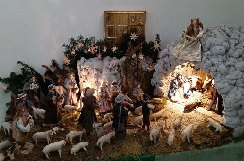 Nach knapp 20 Jahren wurde wieder die alte Krippe, die Mitglieder des Frauenbundes selber in Handarbeit gemacht haben, am rechten Seitenaltar aufgestellt, an der Stelle, wo sie früher jahrzehntelang gestanden hat. Auf Anregung von Angela Hirsch und Rita Dietlmeier, die damals auch bei der Gestaltung der alten Krippe beteiligt waren, kam diese Krippe wieder ans Tageslicht. Der Zeitpunkt passte ideal, weil die Krippenkunst in diesem Jahr ihr 800. Jubiläum feiert: An Weihnachten 1223 stellte der Hl. Franz von Assisi zum ersten Mal eine Krippe auf, und zwar in Greccio (Italien) aus lebendigen Menschen und Tieren. Er wollte damit den Menschen das Staunen lernen darüber, auf welche Weise Gott Mensch geworden ist.