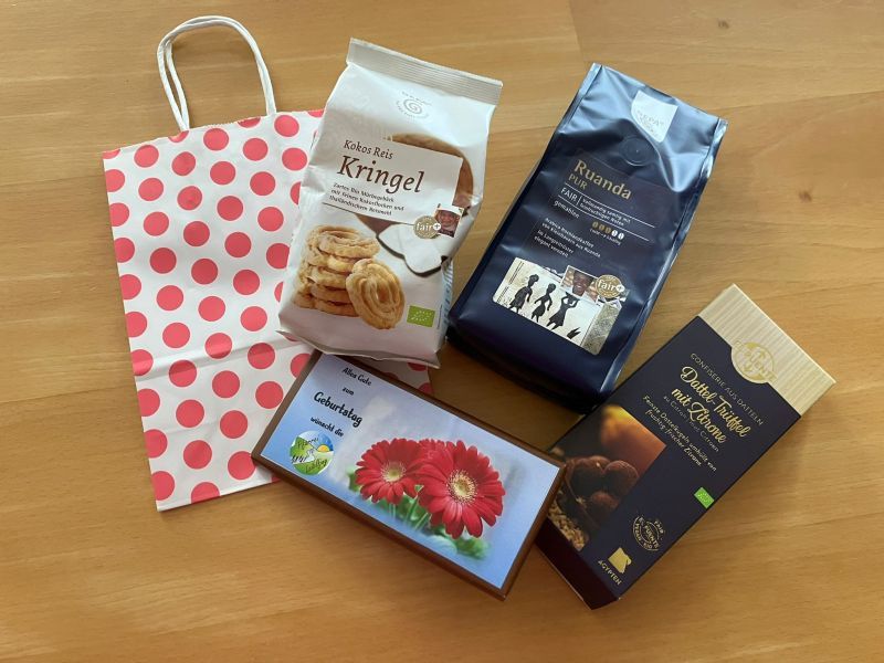 Am 26.03.2023 wurde anlässlich des Fastenessens in der Pfarrei erneut Eine-Welt-Waren verkauft. Viele Produkte laufen auch unter der Motto Fairtrade. Doch was ist das eigentlich? Fairtrade heißt übersetzt gerechter Handel. Organisationen kümmern sich darum, dass die Bauern gute Arbeitsbedingungen haben und garantieren ihnen Mindestpreise. Im Pfarrhaus ist auch eine kleine Ecke mit Fairtrade-Produkten eingerichtet und dort kann man diese fair gehandelten Produkte kaufen. Wenn jemand auf der Suche nach einem kleinen Geschenk ist, wird er hier bestimmt fündig. Auf dem Foto findet sich ein Beispiel für eine Geschenktüten, die sich auf ca. 12-15 Euro beläuft. Um den Einkauf zu erleichtern, bieten wir vom Sachausschuss Mission, Entwicklung, Weltfrieden einmal im Monat einen Verkaufsnachmittag an. Dort stellen wir Ihnen auch gerne eine Geschenktüte zusammen.