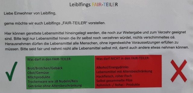 Es werden weniger wertvolle Lebensmittel weggeworfen und dadurch wird Energie gespart, Kohlendioxid vermieden und das Klima geschont. Außerdem haben dadurch Menschen kostenlos etwas zum Essen.