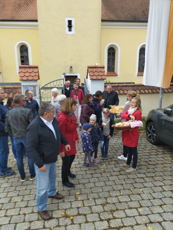 Im Anschluss an die Gottesdienste gab es in den Pfarrteilen Leiblfing, Hailing, Metting, Schwimmbach und Hankofen die traditionellen "Kiachl". Die Schmankerl hatte der Pfarrgemeinderat vorbereitet und versüßte damit den Kirchenbesuchern den Tag.