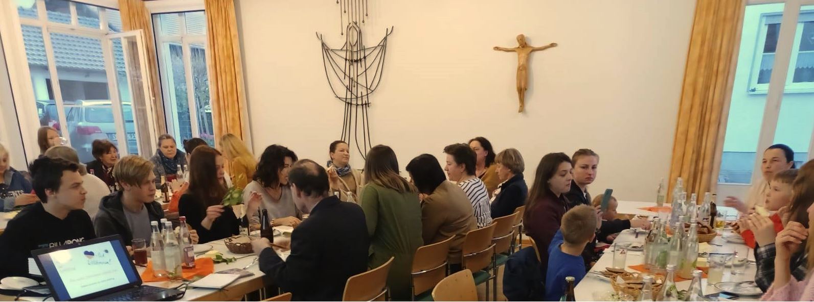 Am Donnerstag, 28. April trafen sich 28 ukrainische Flüchtlinge, die zur Zeit in verschiedenen Ortsteilen der Großgemeinde Leiblfing wohnen, im Pfarrheim. Eingeladen zu diesem Kennenlernabend hatte der Sachausschuss „Caritas" des neugewählten Pfarrgemeinderates. Die Ukrainer wohnen zurzeit bei Gastfamilien in den Ortschaften Eschlspitz, Hankofen, Fierlbrunn, Niedersunzing und Schwimmbach.